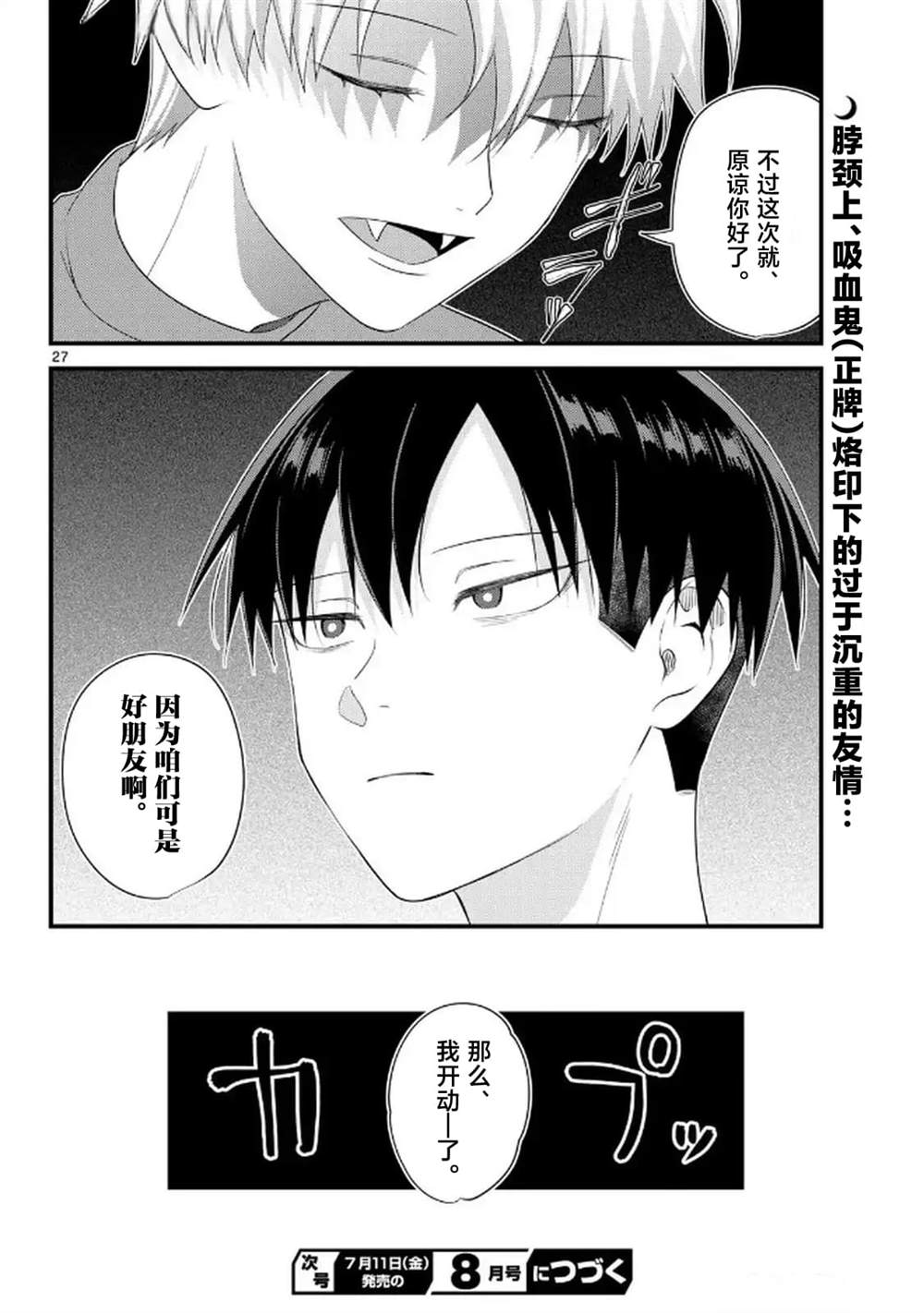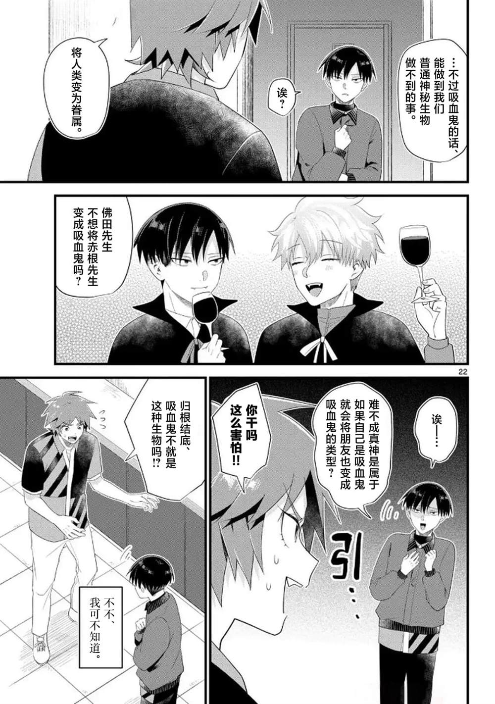 某个寂静的夜晚,在深夜便利店打工的佛田和真神,为打发无聊时间,始漫不经心的聊天。但佛田一个心血来潮的玩笑,竟在无意间启了异世界的大门……。假装吸血鬼的少年和真实狼少年从谎言始的“混乱人外温馨喜剧”!