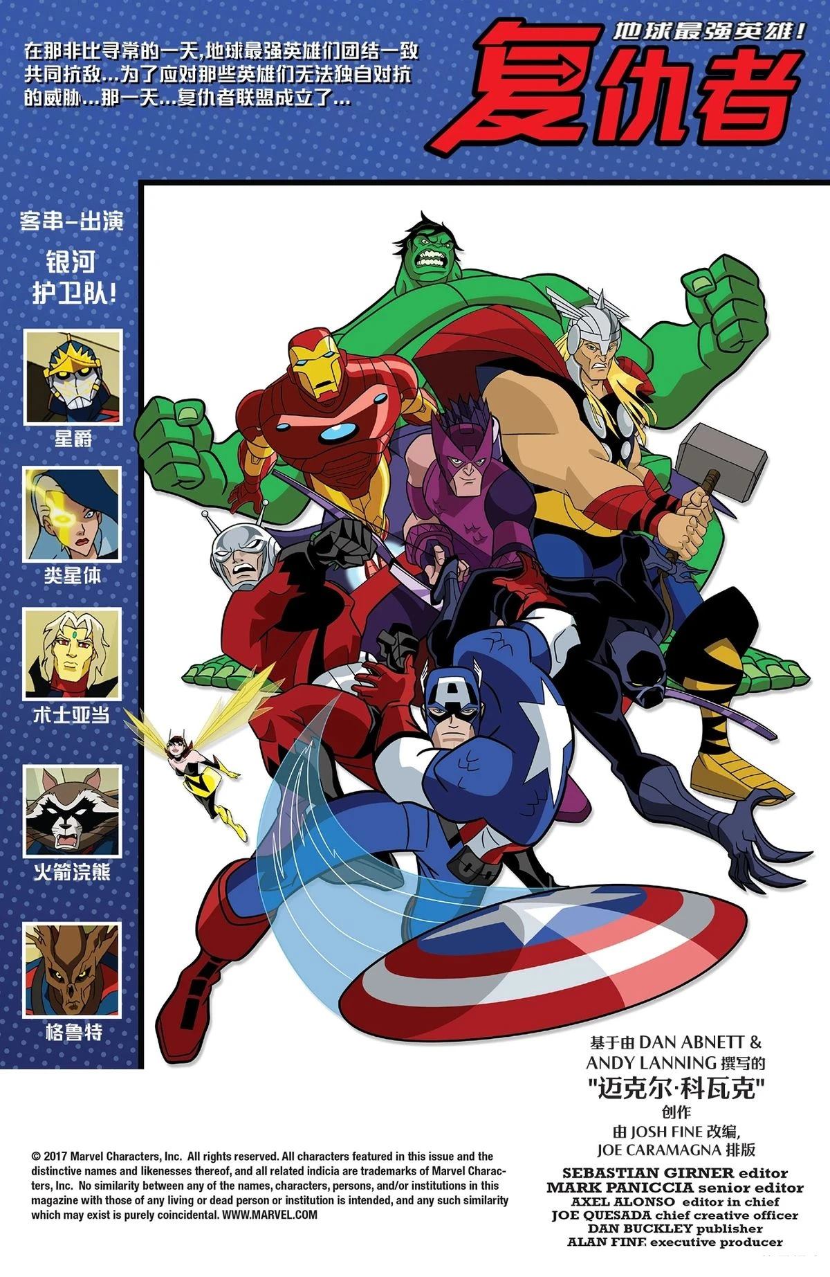 基于令人惊叹的动画系列《复仇者:地球最强英雄》(AEMH) 改编!当世界上最邪恶的超级反派们发起攻势时你会怎么做?不要犹豫,呼叫地球最强英雄们拯救世界!在本期的第一个故事中复仇者将直面非凡龙与满大人的双重攻势。而在第二个故事中我们将跟随玛丽亚·希尔与菲尔·科尔森以一种特别的方式重新回顾复仇者所经历的[]的各类重大事件[-折叠]