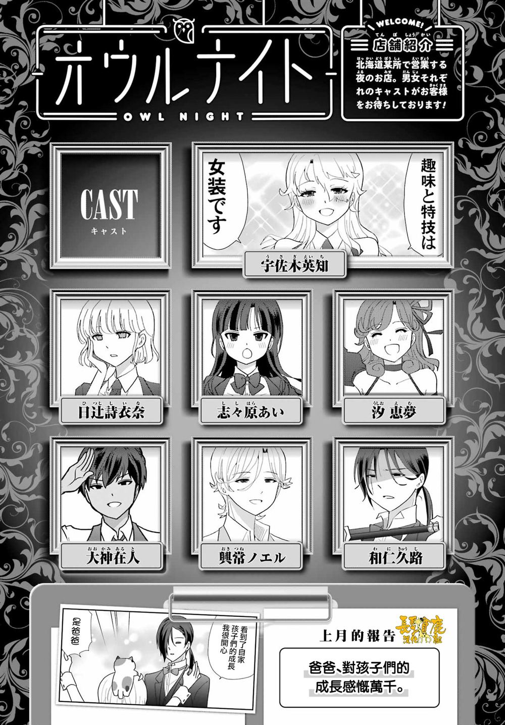 二十岁的大学生?宇佐木英知、在决意去到的夜晚的街道被谜一样的人给逮住了! 困惑之余被带到的地方是、不可思议的俱乐部「OWL NIGHT」。 「找我女朋友有什么事吗」的高津雁也描绘的、工作喜剧坦荡地始连载了!