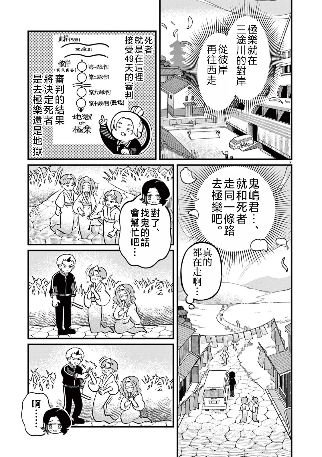 温柔却胆小的鬼族·鬼嶋千代田,在满是钢铁体育系恶鬼的地狱求职屡屡碰壁。某天,他竟在现世找到一份工作-—护送亡魂前往三途川的「彼世」接送员。终于被临时录用的鬼嶋,原本该与地狱之鬼和极乐天女搭档迎接死者,却遇上了怪癖拉面控少女·天羽牡丹。粗线条天女与温柔鬼族的「黄泉快递」职场喜剧,就此幕!