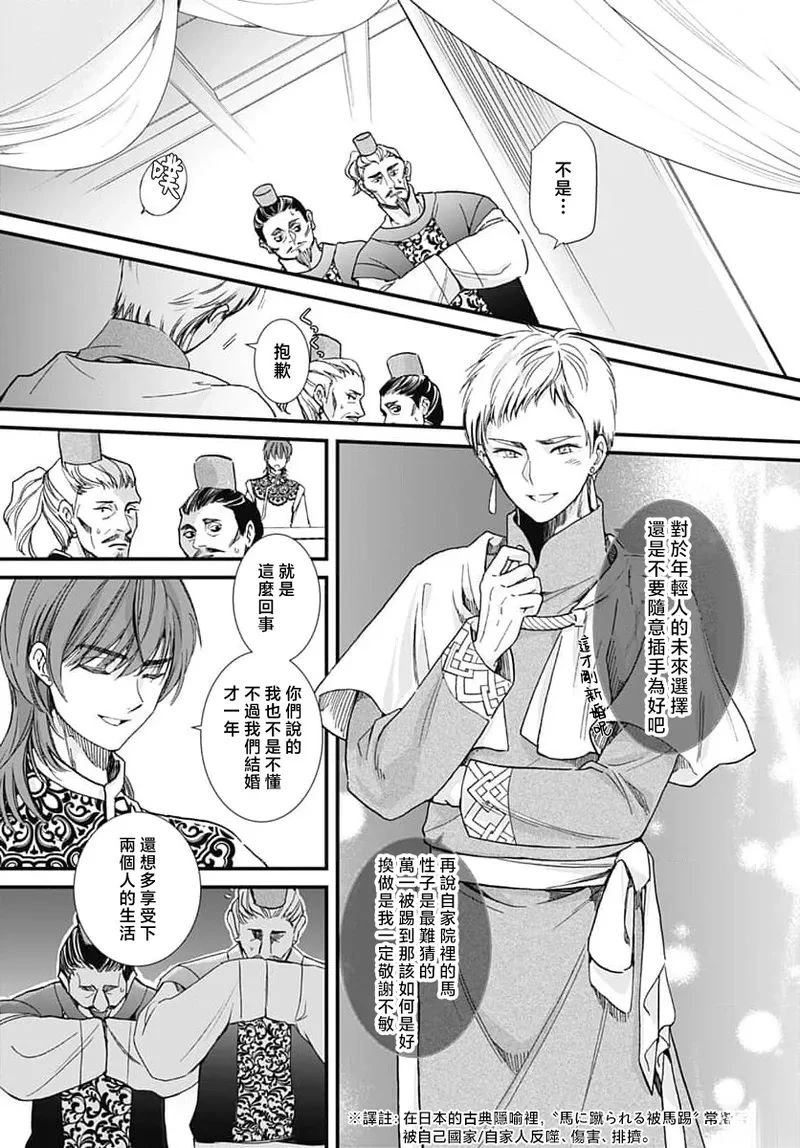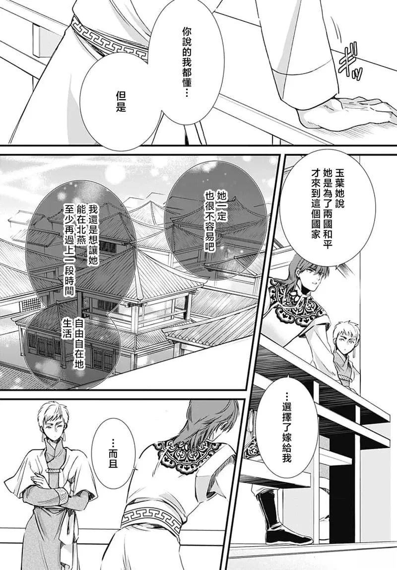 【被强行夺走,却深陷爱恋…!身心都无法抗拒的快乐浪漫】东华国的皇妹玉叶,一直在照顾战争中负伤的北燕国俘虏们。某天,她遇见了一位作为北燕使者来访、拥有翠玉色眼眸的青年。玉叶逐渐被那强烈的目光所吸引……!?将丝绢文库的超人气作品漫画化!